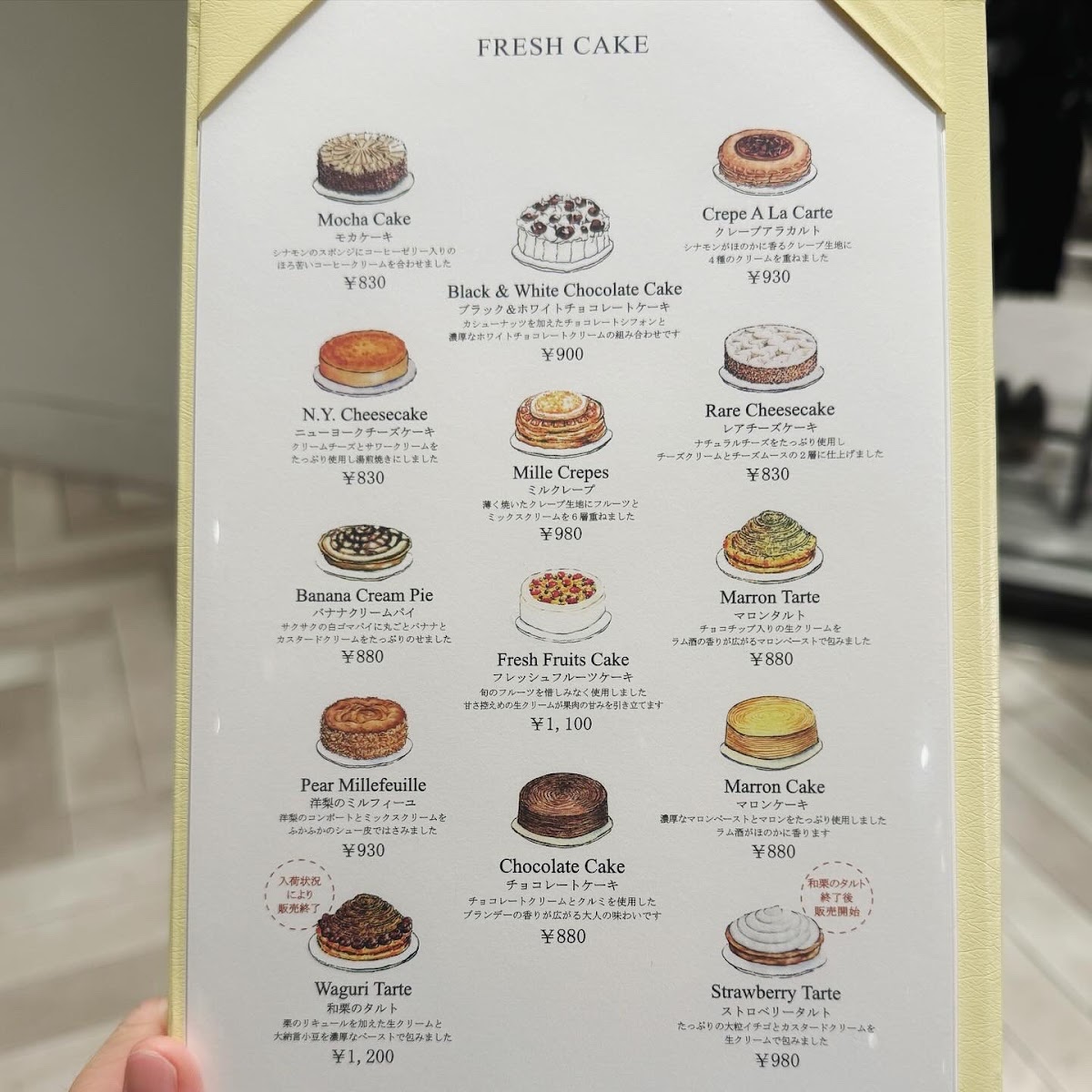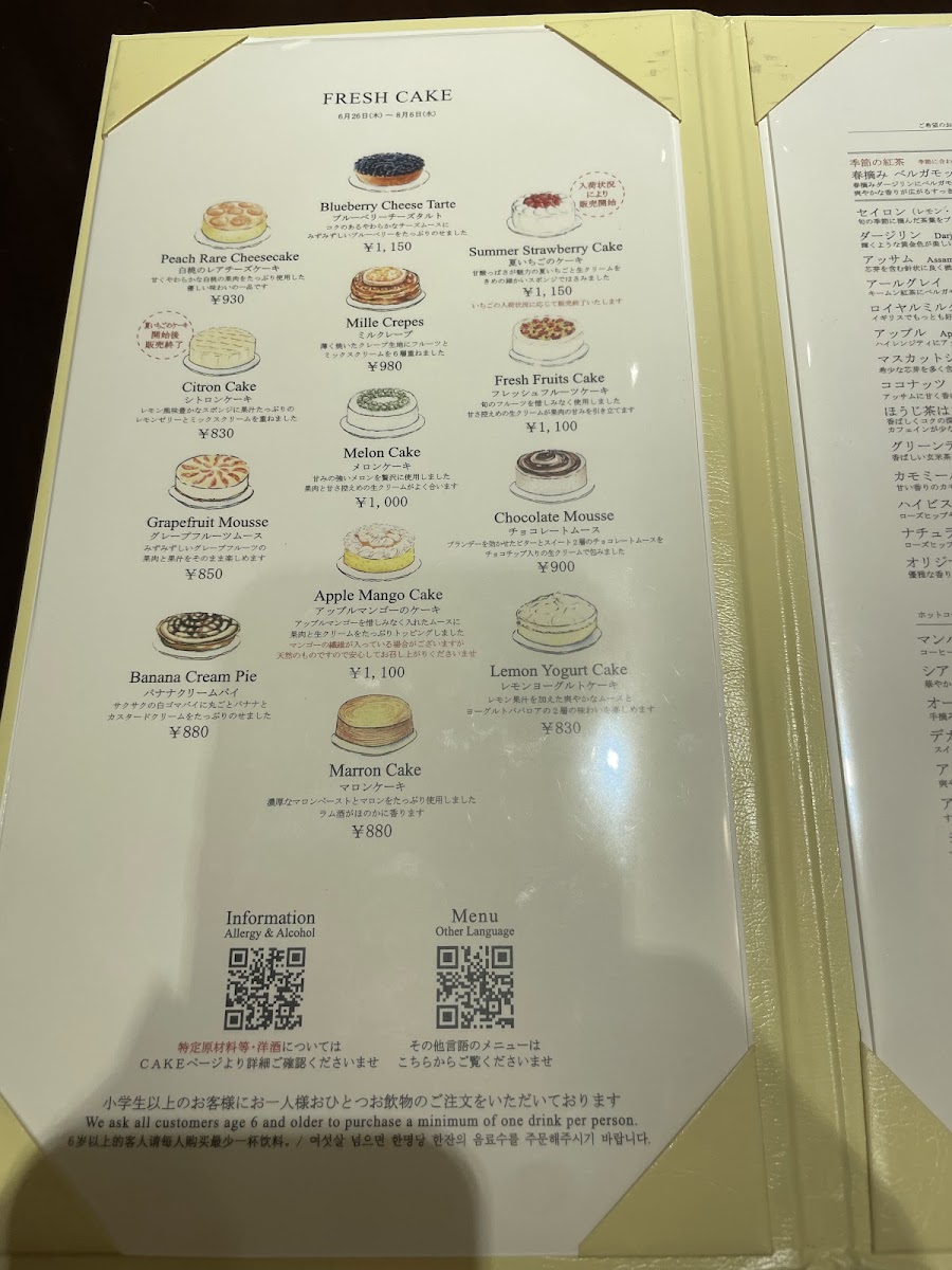 HARBS Kintetsu Abeno Harukas Store Menu